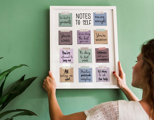 Note to self poster, self care poster, Be kind to yourself, Daily check-in, Mindfulness, Mental health poster, Therapist office School