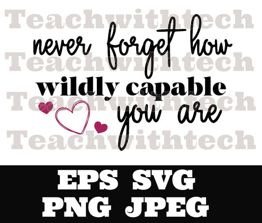never forget how wildly capable you are SVG PNG jpeg eps - affirmation cut file - cricut silhouette cameo - empowerment design -