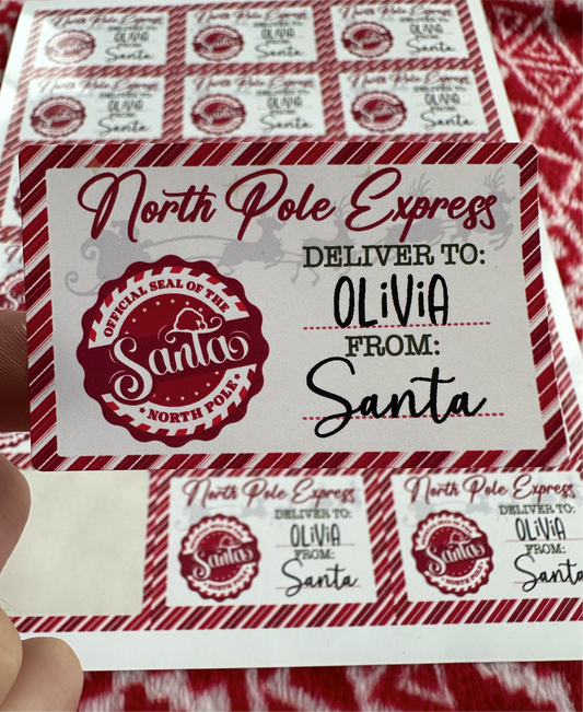 Custom Christmas Gift Label - North Pole Express - Special Delivery -From Santa Christmas Gift Label - Sheet of 18 - North Pole Express - Personalized Stickers