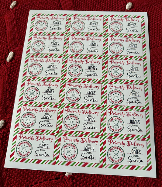 Custom Christmas Gift Label - Priority Delivery -From Santa Christmas Gift Label - Sheet of 18 - North Pole Express - Personalized Stickers