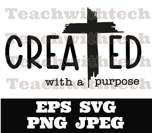 Created with a purpose with cross PNG EPS SVG jpeg Download Christian svg Jeus png T shirts vinyl Church cut file - Cricut Silhouette Cameo