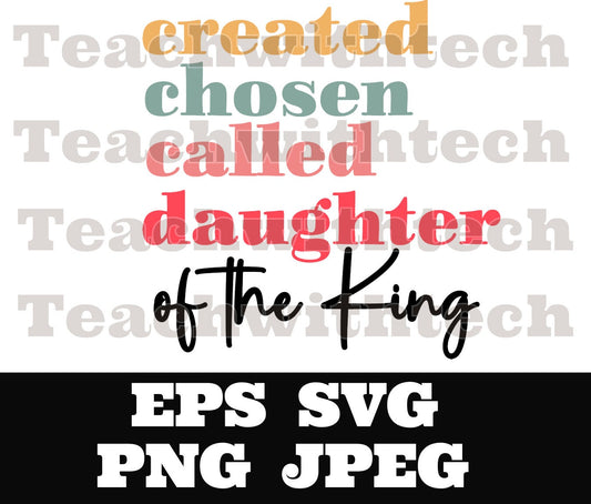 Created Chosen Called Daughter of The King SVG PNG eps jpeg, Scripture, Affirmation, Bible Verse, Biblical, Sublimation Cricut Silhouette