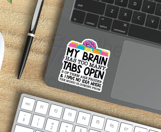 My brain has too many tabs open Sticker, Water Bottle Decal Funny Vinyl Decals, funny mom gift stickers, Water Bottle Decal, Teacher Gift