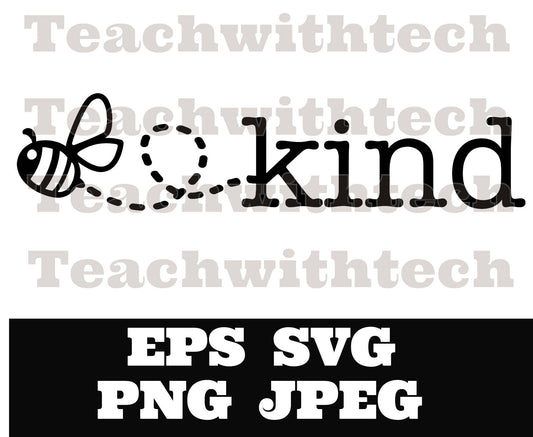 Bee Kind with bee - SVG Cricut Silhouette Download Cut File PNG EPS - Teacher School Download svg - School be kind - Be kind svg - Be Kind