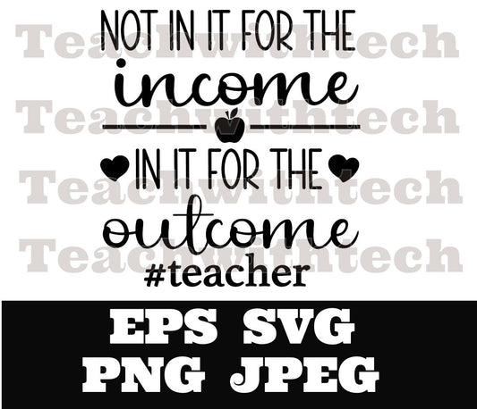Not in it for the income svg png eps jpeg Digital Download Teacher T shirt design Sublimation Cricut Silhouette Cameo Cut File SVG School