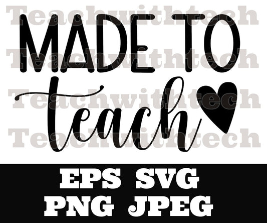Made to Teach SVG PNG JPEG eps with pencil - Color and black - Teacher T shirt cut file - cricut - silhouette - Teacher cut file