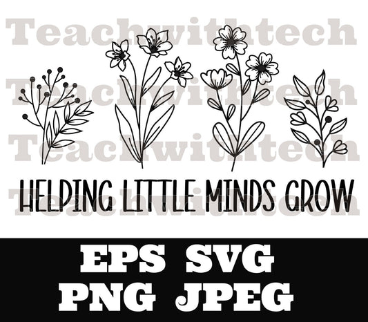 Helping little minds grow SVG PNG JPEG eps - Teacher T shirt cut file - cricut - silhouette Teacher cut file School download - Student Grow