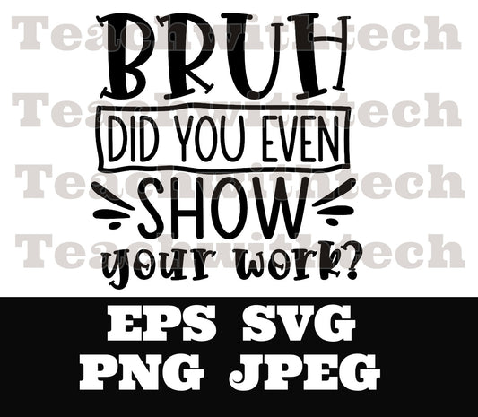 Bruh did you even show your work svg png eps jpeg Digital Download Teacher T shirt design Sublimation Cricut Silhouette Cameo Cut File Math