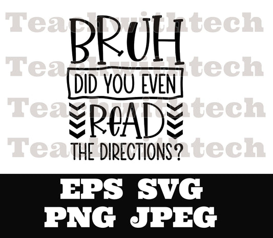 Bruh did you even read the directions svg png eps jpeg Digital Download Teacher T shirt design Sublimation Cricut Silhouette Cameo Cut File