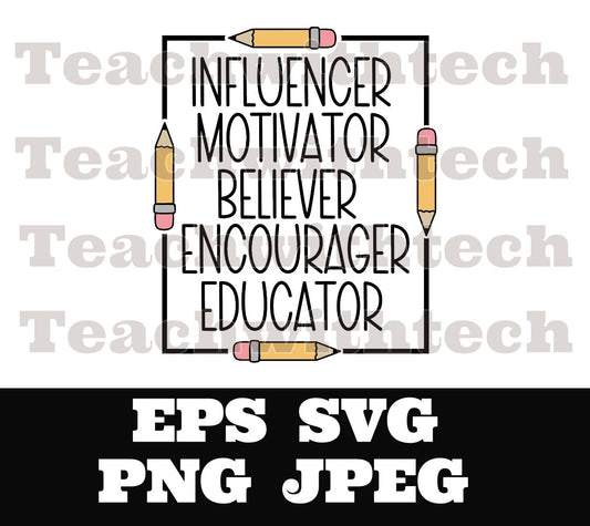 Influencer Motivator Believer Educator svg, png, eps, jpeg, teacher gift shirt Silhouette Cricut Digital Download Sublimation Cameo Cut File