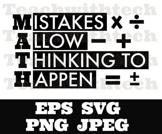 Math Mistakes Allow Thinking to Happen SVG PNG eps jpeg Classroom math T shirt design, math teacher silhouette cameo glowforge Download