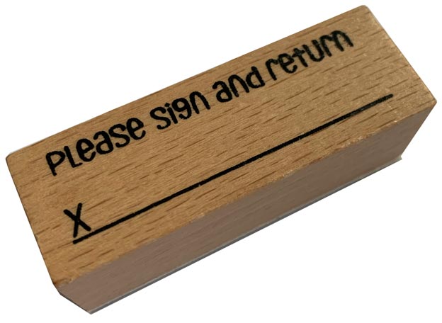 Please sign and return Stamp Block: 6.1 cm x 2.1 cm (Design is 5 cm x 1.4 cm)