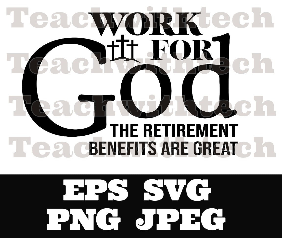 Work for God the retirement benefits - PNG EPS SVG jpeg Download Christian svg Jesus T shirts vinyl Church ministry download Jesus cut file